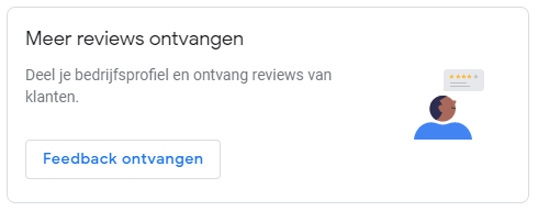 Binnen Google Mijn Bedrijf kun je een URL kopiëren waarmee je mensen kunt vragen om een review te schrijven. Log hiervoor in bij Google Mijn Bedrijf. Op de beginpagina vind je onderstaand vakje. Wanneer je hierop klikt, krijg je een korte URL te zien. Deze kun je bijvoorbeeld mailen naar vrienden, klanten, buren, familie, etc.