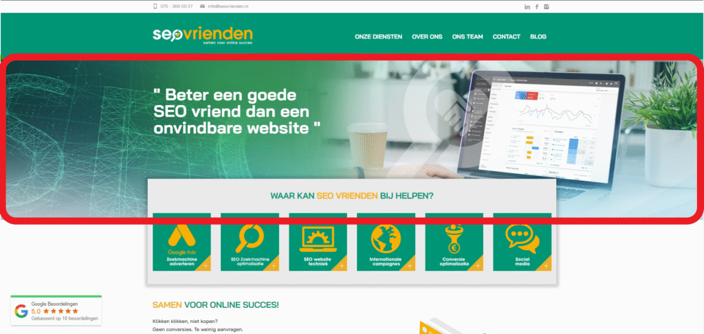 Op de website van SEO vrienden vind je ook een banner gemaakt met Slider Revolution: