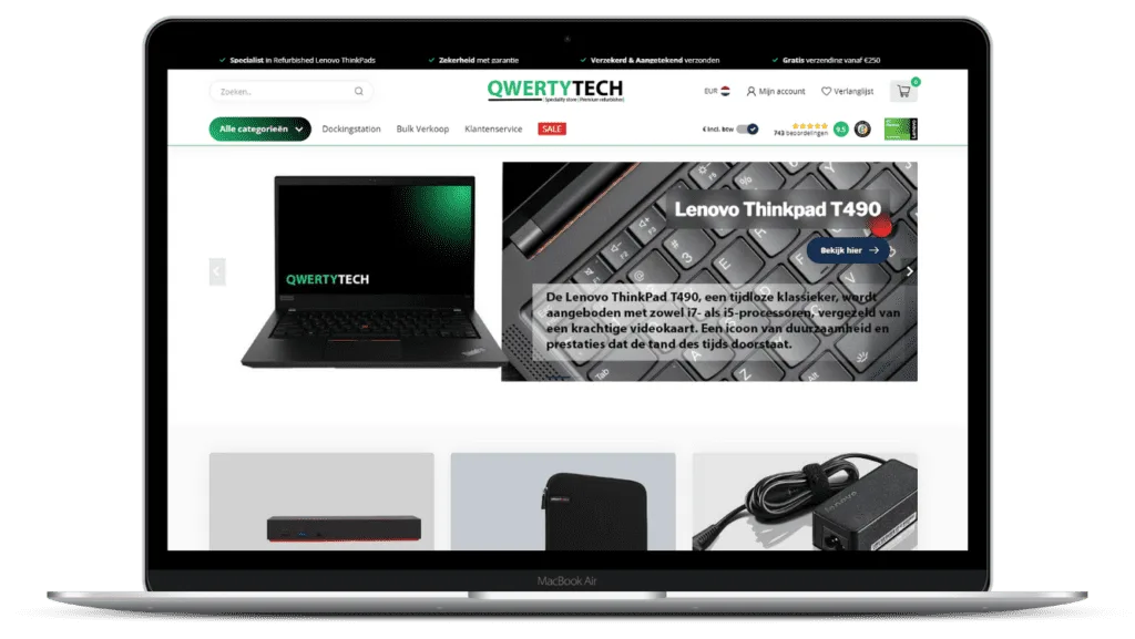 Qwerty-tech.nl is gespecialiseerd in refurbished Lenovo ThinkPads en desktops voor de zakelijke markt. Alle apparaten worden professioneel gereinigd, voorzien van actuele software en geleverd met garantie. De focus ligt bewust op de business line van Lenovo vanwege de bouwkwaliteit en prestaties. Online verkoopt Qwerty-tech via een e-commerce omgeving waarin voorraad en aanbod continu veranderen.