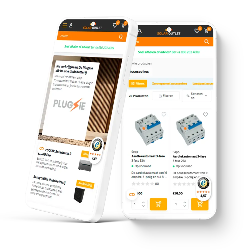 Solar Outlet is opgericht in 2017 en uitgegroeid tot een van de marktleiders in de benelux op het gebied van zonnepanelen, thuisbatterijen en laadpalen. Dankzij slimme inkoop en efficiënt voorraadbeheer kunnen ze scherpe prijzen aanbieden. Ze bedienen zowel particuliere eindgebruikers als professionele installateurs via hun webshop. Met ambities voor verdere groei wilden ze hun zichtbaarheid sterk vergroten en technisch solide online verder.