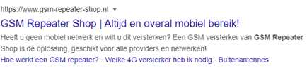 Als je wilt weten of je bedrijf een verkopersbeoordeling heeft, typ dan de volgende link in en vervang {jewebsite} voor de URL van je homepage.